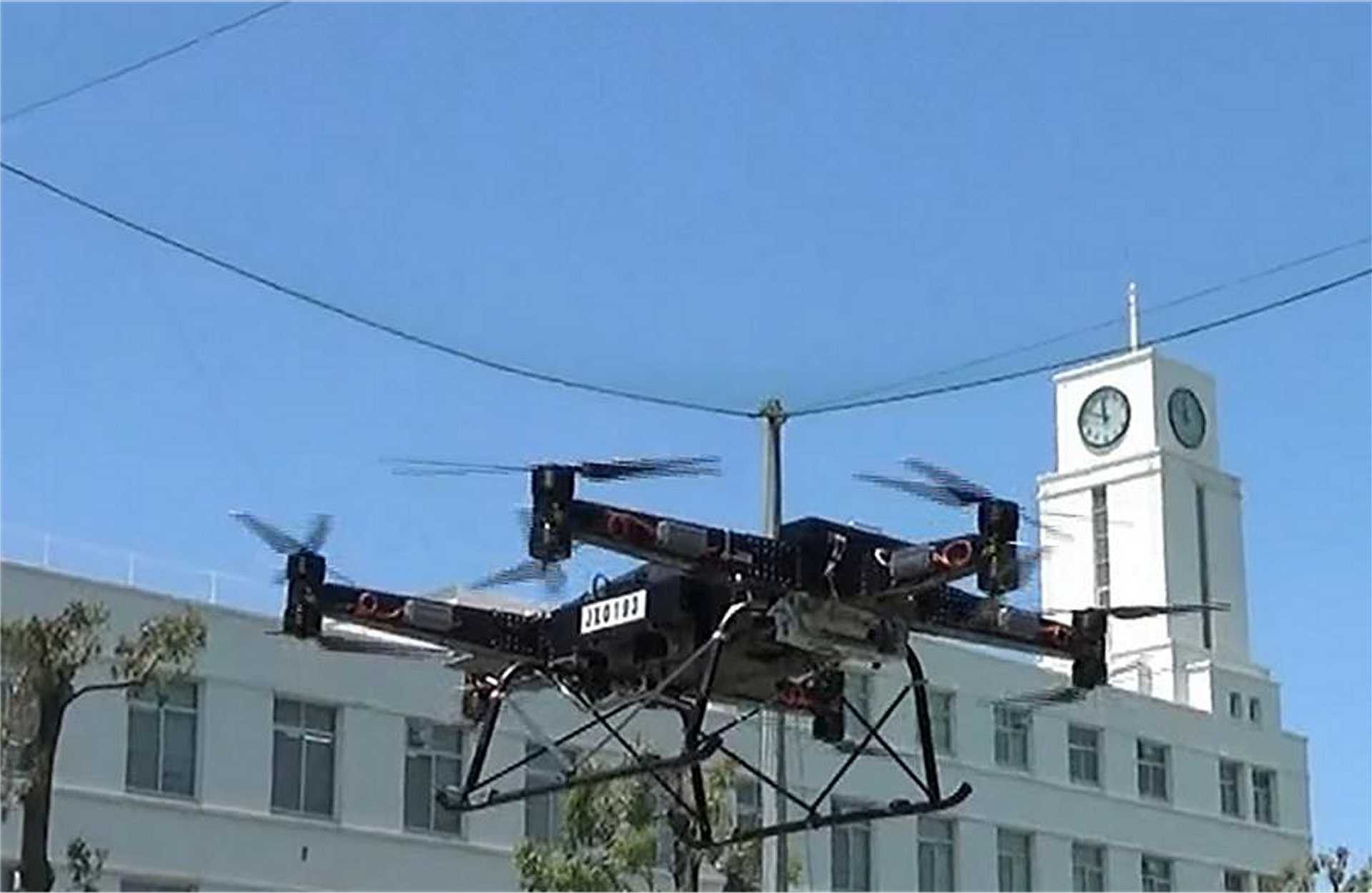 The hybrid-powered aerial drone developed by Mitsubishi Heavy Industries and Yamaha Motor during a successful flight test, showcasing its ability to carry a 200 kg payload over long distances. (Picture source: MHI)