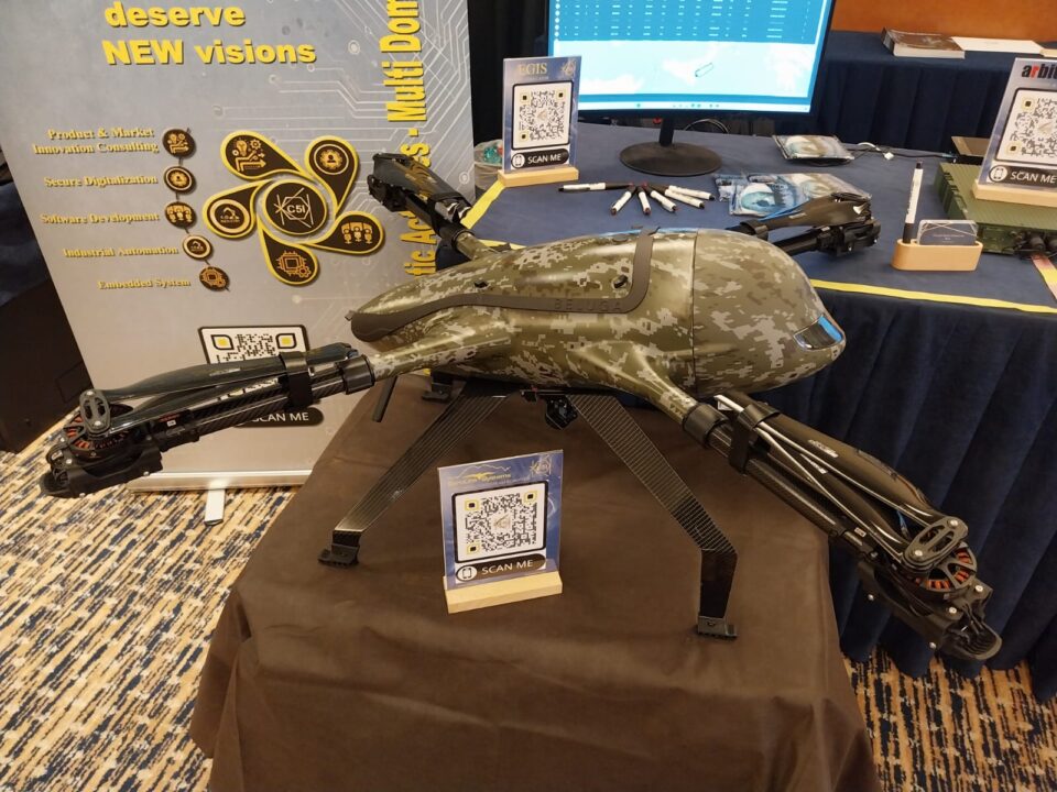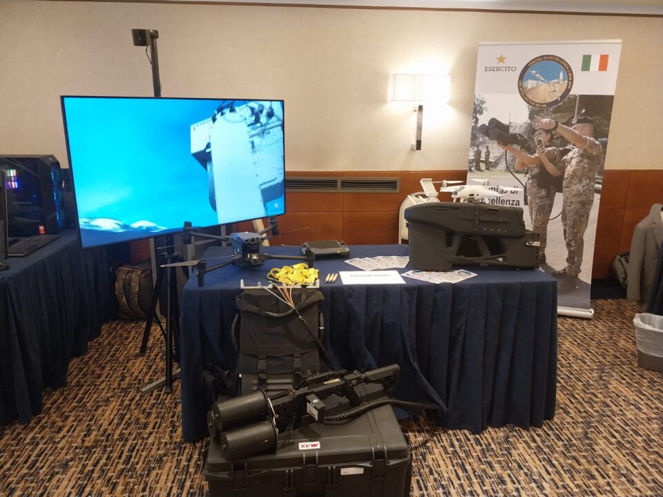 Tra gli altri stand visitati vi è, poi, quello di C5I (realtà aziendale attiva, oltre che nello sviluppo di sistemi, anche nella promozione di imprese attive nel campo della sicurezza dei dati, con particolare riferimento alle CEMA – Cyber Electromagnetic Activities), dove erano esposti un “Beluga” (UAS interamente realizzato in Italia dall’azienda “Eurolink” e caratterizzato da 40 km di raggio d’azione, nonché da un payload di 1,6 kg utilizzabile per il trasporto di JAMMER, sensori di tipo ECM, ESM ed elettro-ottici, nonché sistemi anti-IED), un simulatore sviluppato internamente dall’azienda al fine di rendere visibili eventuali minacce nello spettro elettromagnetico e nel layer delle comunicazioni e, non da ultimo, un “Cross Domain Gateway” dell’azienda “Arbit”.