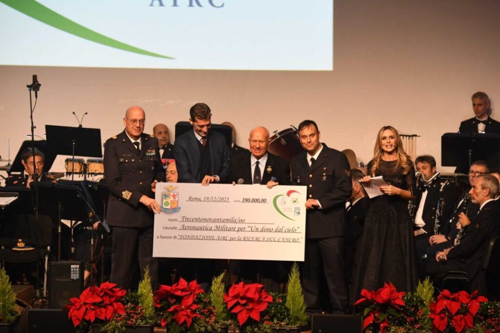Con la consegna di un assegno simbolico da parte del Generale Ispettore Capo Basilio Di Martino, presidente del Comitato per il Centenario AM, al Presidente di Fondazione Airc, Prof. Andrea Sironi, si è ufficialmente conclusa l’iniziativa solidale “Un dono dal cielo per AIRC”, promossa in tutto il 2023 dall’Aeronautica Militare, con il supporto dell’Associazione Arma Aeronautica, per raccogliere fondi a sostegno della ricerca sul cancro.