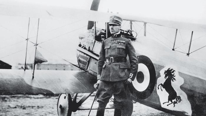 Francesco Baracca accanto al suo aereo