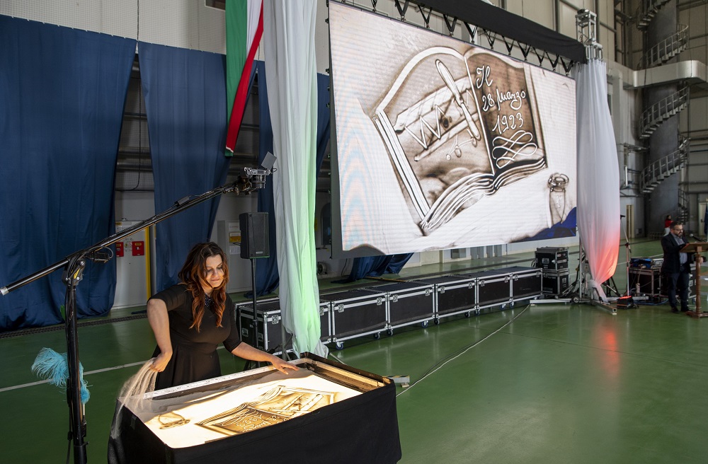 “Incantevole” è stata l’esibizione dell’artista Stefania Bruno: un racconto sulla storia dell’Aeronautica Militare con la tecnica di disegno sulla sabbia, partendo dall’aeroplano di Francesco Baracca, attraverso il raid Roma-Tokio, dal trasporto sanitario d’urgenza al velivolo P-72A, concludendo con la raffigurazione della Beata Vergine di Loreto, lo stemma e il logo del Centenario AM.