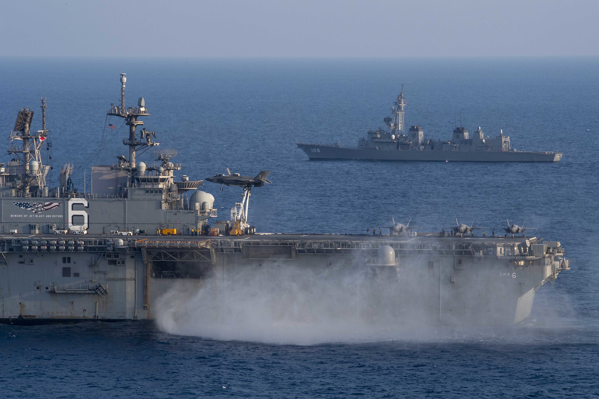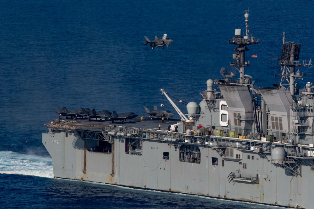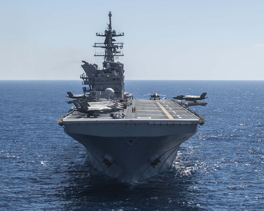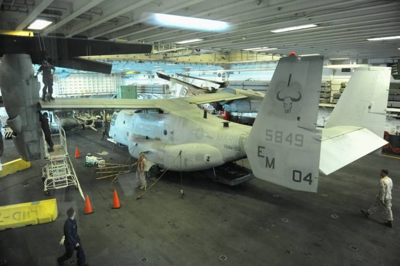 Può trasportare circa 20 AV-8B o F-35B e due MH-60S, per fungere da piccola portaerei, come dimostrato dalle operazioni di atterraggio per elicotteri (LHD) nell’Operazione Iraqi Freedom.