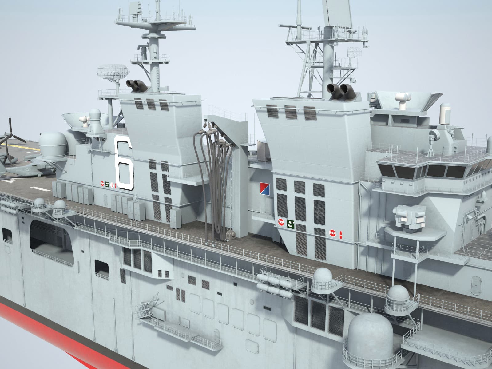 Altre navi da guerra in questa classe avranno una baia allegabile per la guerra anfibia a poppa per trasportare e mettere a mare mezzi da sbarco come il Landing Craft Air Cushion (LCAC), come nelle LHA classe Tarawa e nelle navi d’assalto anfibie classe Wasp.