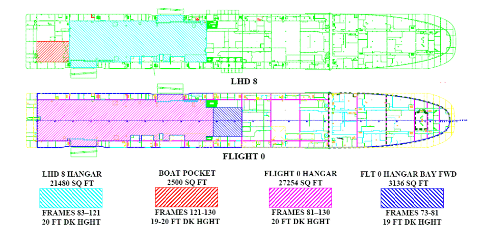Il nuovo LHX potrebbe essere un progetto modificato della classe America costruito con un vano allegabile ed una isola più piccola, che gli darebbe il 20% di capacità in più sul ponte di volo. Ciò eliminerebbe l’attuale restrizione per gli MV-22 per l’atterraggio sui punti 5 e 6, e darebbe anche spazio a quattro MV-22B, tre F-35B Lightning II o tre CH-53K per utilizzare il ponte di volo. Nel 2008, l’approvvigionamento delle navi del Volo 2 era stato provvisoriamente pianificato per il 2024, ma a quel punto potrebbe non essere pratico o conveniente.