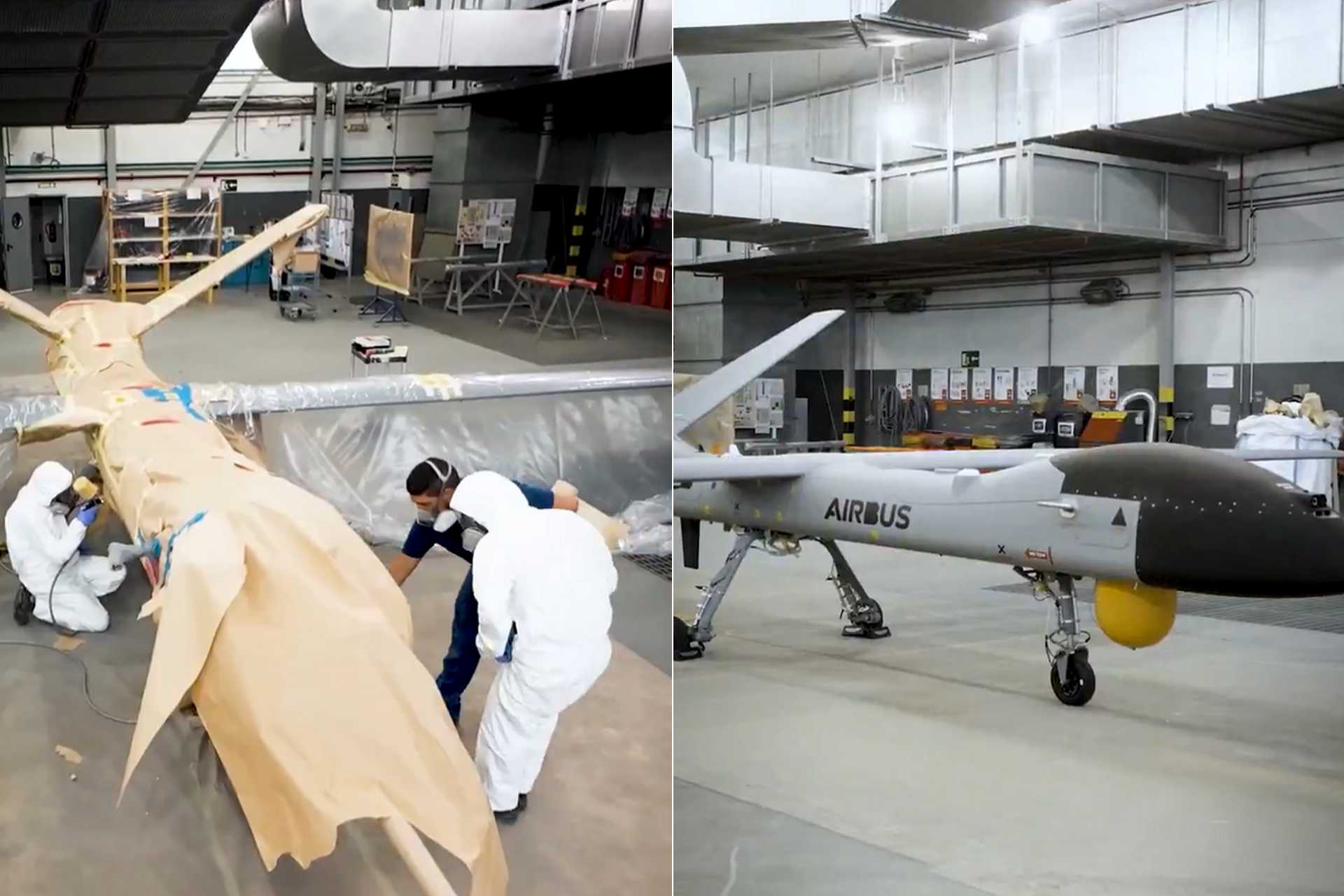 The first Airbus SIRTAP tactical unmanned aerial system prototype rolls out in full paint after an intensive summer of ground testing, marking the start of preparations for its upcoming flight campaign in Spain. (Picture source: Airbus Defence)