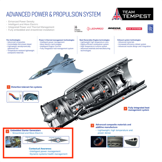 Il nuovo motore di cui è responsabile la Rolls-Royce dovrà soddisfare non solo la grande spinta richiesta dalla cellula, ma anche la richiesta di dispositivi elettronici di bordo, comprese le armi laser che consumano grandi quantità di energia. Per Rolls-Royce, lo sviluppo per il Tempest sarà il primo e probabilmente l’unico progetto di sviluppo di motori da combattimento. Come è noto, GE (General Electric) e P & W (Pratt e Whitney) negli Stati Uniti stanno lavorando allo sviluppo dell’ultimo motore da combattimento, e anche la MTU tedesca e altre società stanno conducendo ricerche.