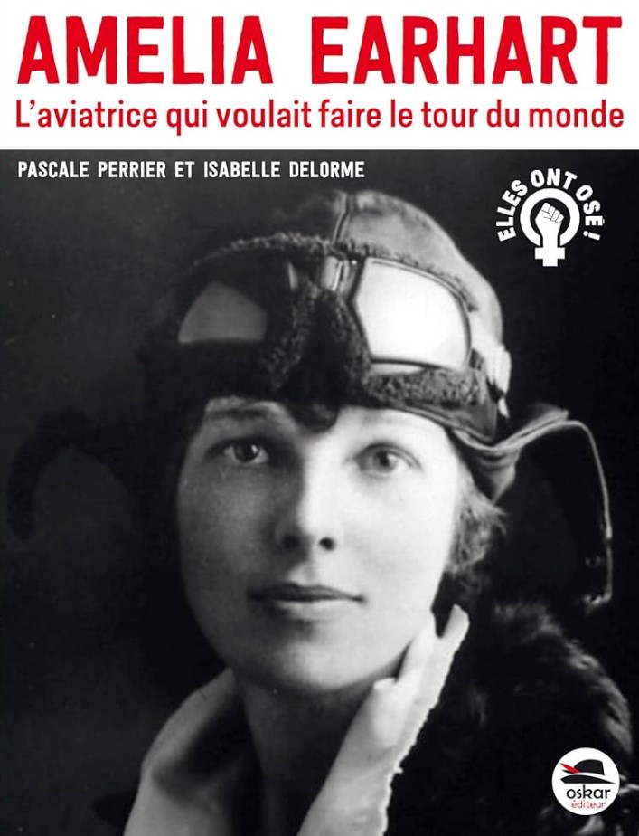 Book. “Amelia Earhart : L’aviatrice qui voulait faire le tour du monde.” Authors, Pascale Perrier and Isabelle Delorme. Éditions Oskar, “Elles ont osé” collection. ISBN: 1021407151
