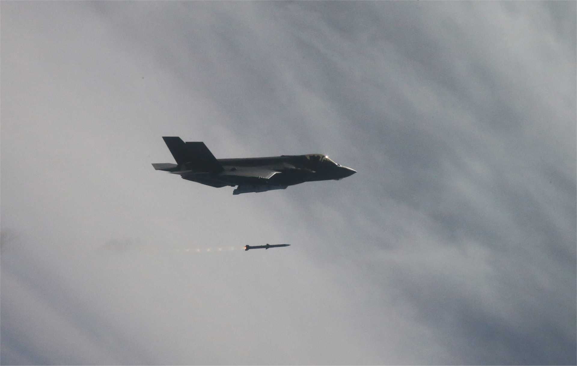 U.S. Air Force An F-35A Lightning II test aircraft assigned to the 31st Test Evaluation Squadron from Edwards Air Force Base, California, releases an AIM-120 AMRAAM missile. (Picture source: U.S. DoD)