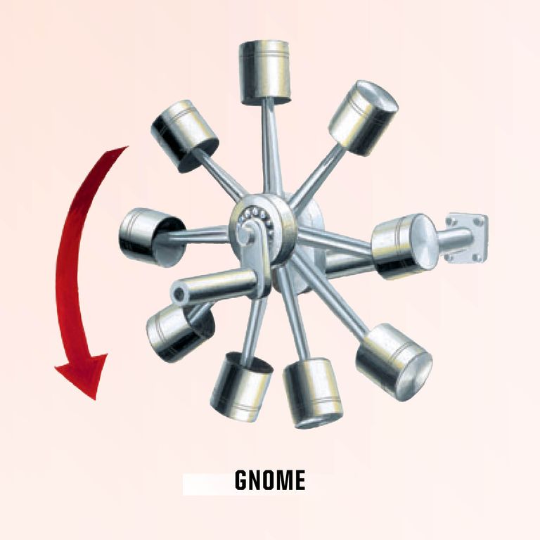 Il primo radicale progresso nelle prestazioni dei motori a pistoni avvenne con lo Gnome Rotary di Louis e Laurent Seguin nel 1909. L’idea di fissare l’elica ai cilindri che ruotano attorno a un albero motore fisso non era nuova, ma i Seguin eseguirono l’idea in modo impeccabile. Con un peso di circa 120 libbre, lo Gnome originale a 5 cilindri erogava 34 CV a 1300 giri/min.