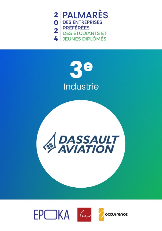 Dassault Aviation is one of the TOP 3 preferred companies in the Industry segment among students and young graduates according to the Epoka 2024 ranking.