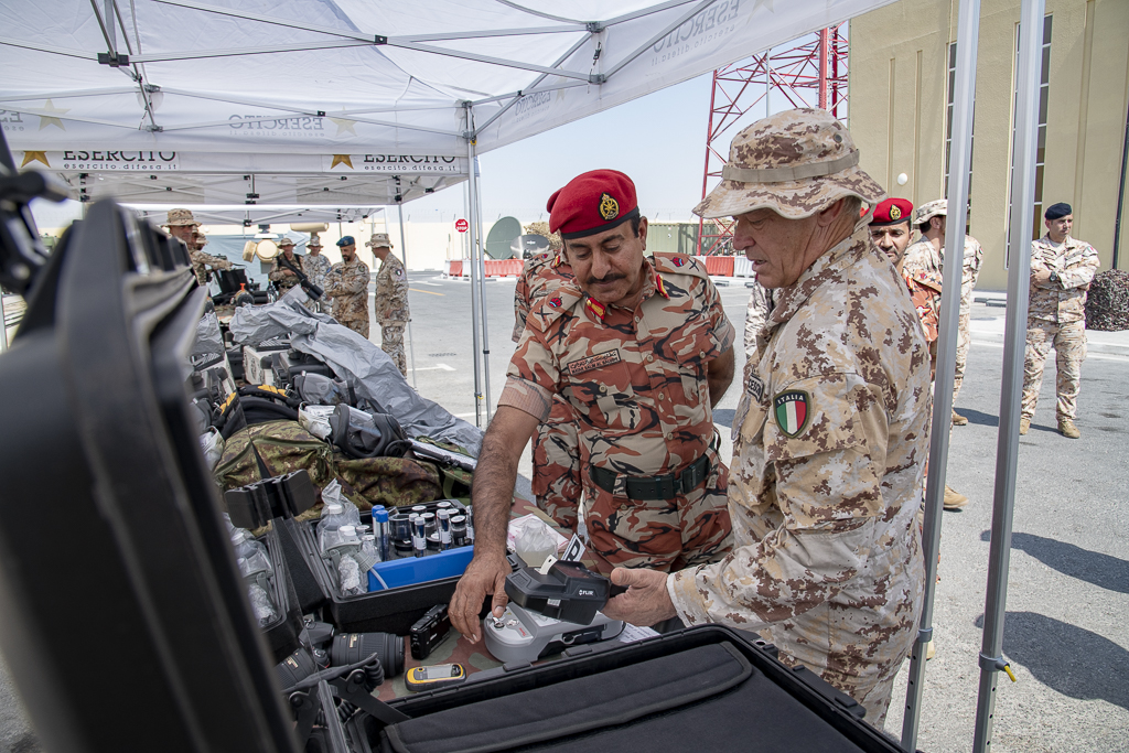 L’Aeronautica Militare, che concorrerà al controllo dello spazio aereo per contrastare l’eventuale impiego non autorizzato di mini e micro droni, ha schierato un Counter-Unmanned Aerial Anti-drone System (C-UAS) costituito da dispositivi jammer portatili e dal sistema anti-drone stanziale ACUS (AMI Counter UAS). A margine dell’incontro, il Comandante del contingente italiano ha evidenziato l’impegno dei Carabinieri in attività di polizia militare e advising, presenti con un dispositivo composto da 14 unità, tra cui il Provost marshal, figura di diretto supporto del Comandante della missione e, in particolare, un Nucleo di 10 advisor, consulenti delle forze di sicurezza (Gendarmeria, Guardia dell’Emiro, Polizia Militare) e delle Forze Speciali del Qatar.