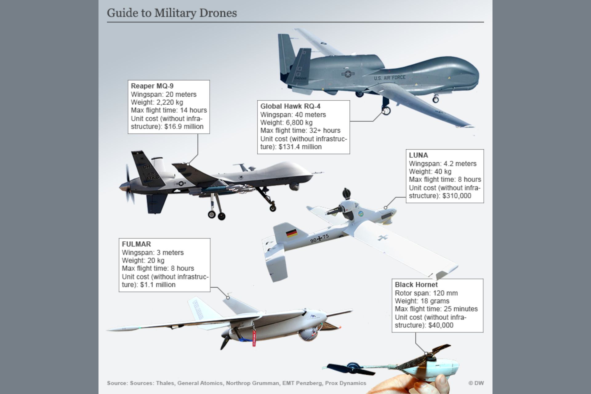 German image of Differnt UAV family for differents military use (Picture source: DW )