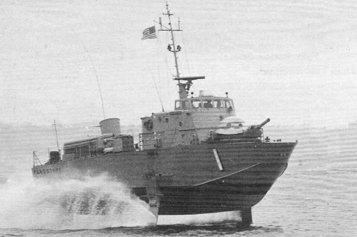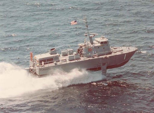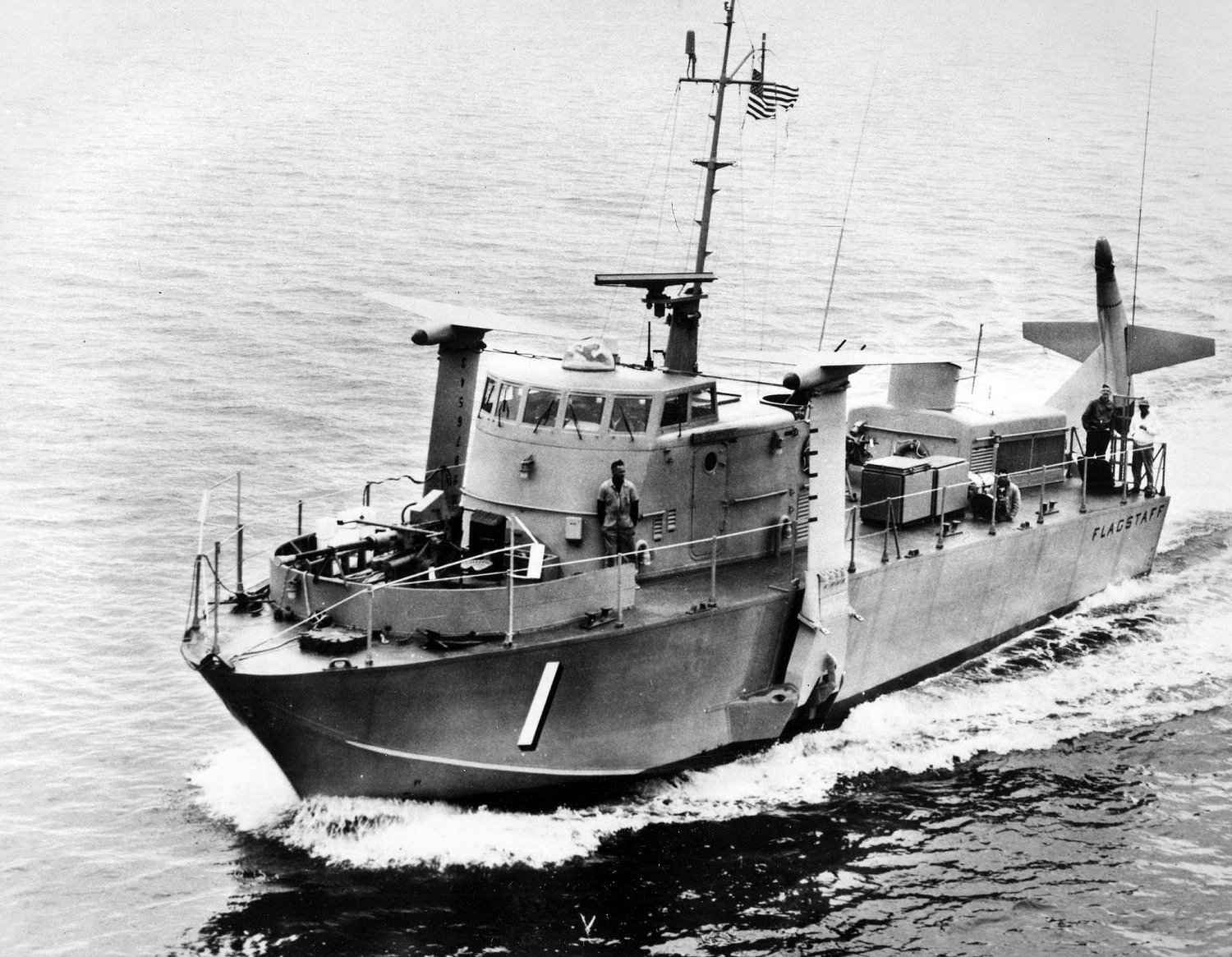 Il Flagstaff venne sviluppato dalla Marina statunitense come nave sperimentale; fu costruito dalla Grumman Aerospace Corporation di Bethpage, New York . Venne consegnato alla Marina nel settembre 1968. Dopo un periodo di valutazione operativa, fu schierata nel Vietnam del Sud con la Tucumcari. Le due navi formavano il Coastal Squadron 3, e avevano sede a Cam Ranh Bay. Condusse missioni di pattugliamento in Vietnam fino al 1970. Gli aliscafi Flagstaff e la Tucumcari erano troppo meccanicamente complessi per le strutture di riparazione in Vietnam e, di conseguenza, alla fine furono ritirati dal combattimento. Al suo ritorno negli Stati Uniti nel 1970, fu assegnata alle Forze anfibie della flotta del Pacifico dove partecipò a numerose prove di prontezza ed esercitazioni di addestramento e fu anche usata come banco di prova per vari sottosistemi navali, come il Programma di sviluppo aliscafo avanzato della Marina.