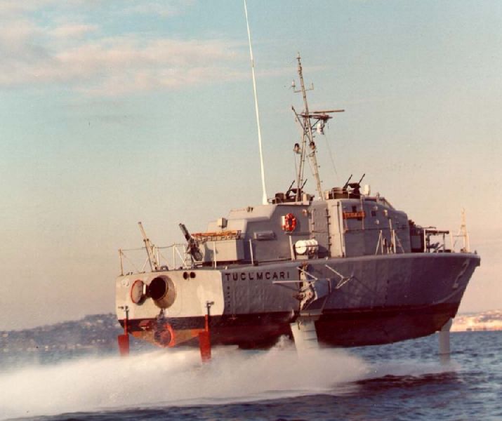 Il Tucumcari (PGH-2) – (1966 – 1973): era un aliscafo costruito dalla Boeing. Prendeva il nome da Tucumcari, New Mexico; è stata la base per la tecnologia utilizzata nelle successive motovedette di classe Pegasus e nei traghetti tipo Jetfoil. La sua caratteristica unica era una propulsione “pump-jet” e una configurazione con ali completamente sommerse controllate dal computer: una aletta laminare a prua e due ali laminari intersecanti sui lati di babordo e tribordo. Il Tucumcari era uno dei due prototipi di imbarcazioni commissionate dalla US NAVY allo scopo di valutare la promettente per l’epoca tecnologia degli aliscafi con ali intersecanti. La seconda unità fu la rivale che Grumman costruì: la USS Flagstaff(PGH-1).