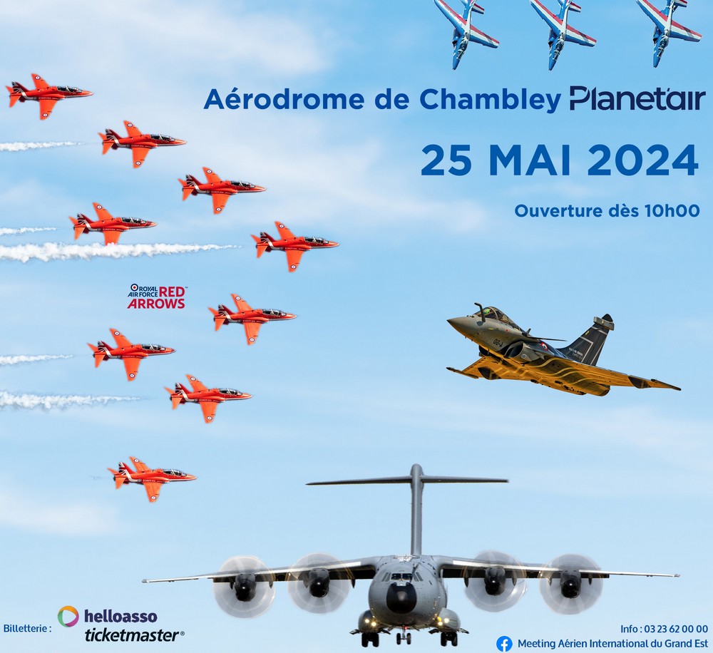 Chambley airfield (Planétair) will host its annual air show on May 25, 2024. A host of ground-based activities will be on offer, including exhibitions, flight simulators, stands of all kinds and dedicated areas for food and drink.