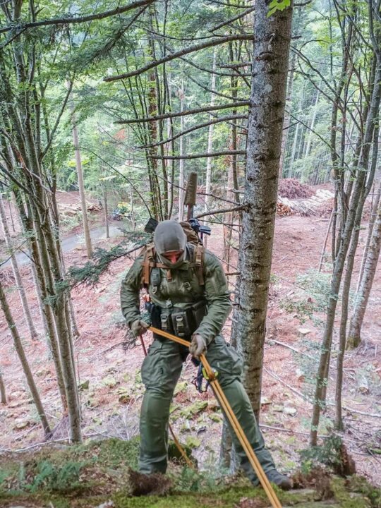 - l’inserzione e avvicinamento occulto in ambiente boschivo (cosiddetto “stalking”) con movimento appiedato, ricerca ed acquisizione dei target, identificazione, osservazione, ingaggio (simulato) ed estrazione