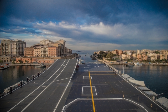 I lavori di ammodernamento e ristrutturazione della nostra ammiraglia sono iniziati nel dicembre 2018. Il ponte di volo ha ricevuto un nuovo rivestimento del ponte e rinforzi strutturali. Gli aggiornamenti includono il ponte di volo rinforzato per gestire lo stress della spinta diretta dei motori dell’F-35B, che è in grado di orientare verticalmente i suoi propulsori il basso per il decollo o l’atterraggio. Per motivi di consumi, il decollo avverrà sempre utilizzando una brave corsa e lo ski-jump di prua della nave.