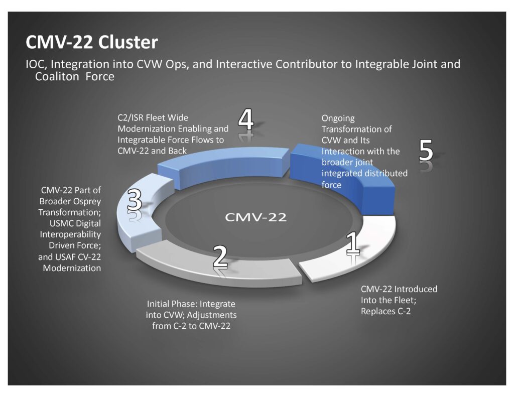 Fornirà alla US ANVY un aumento significativo della capacità e della flessibilità operativa rispetto al C-2A. Le operazioni del CMV-22B dovranno essere basate sulla costa o di assalto via mare. L’Osprey è un abilitatore fondamentale per la guerra, fornendo la logistica di combattimento sensibile e necessaria per supportare le operazioni di combattimento.