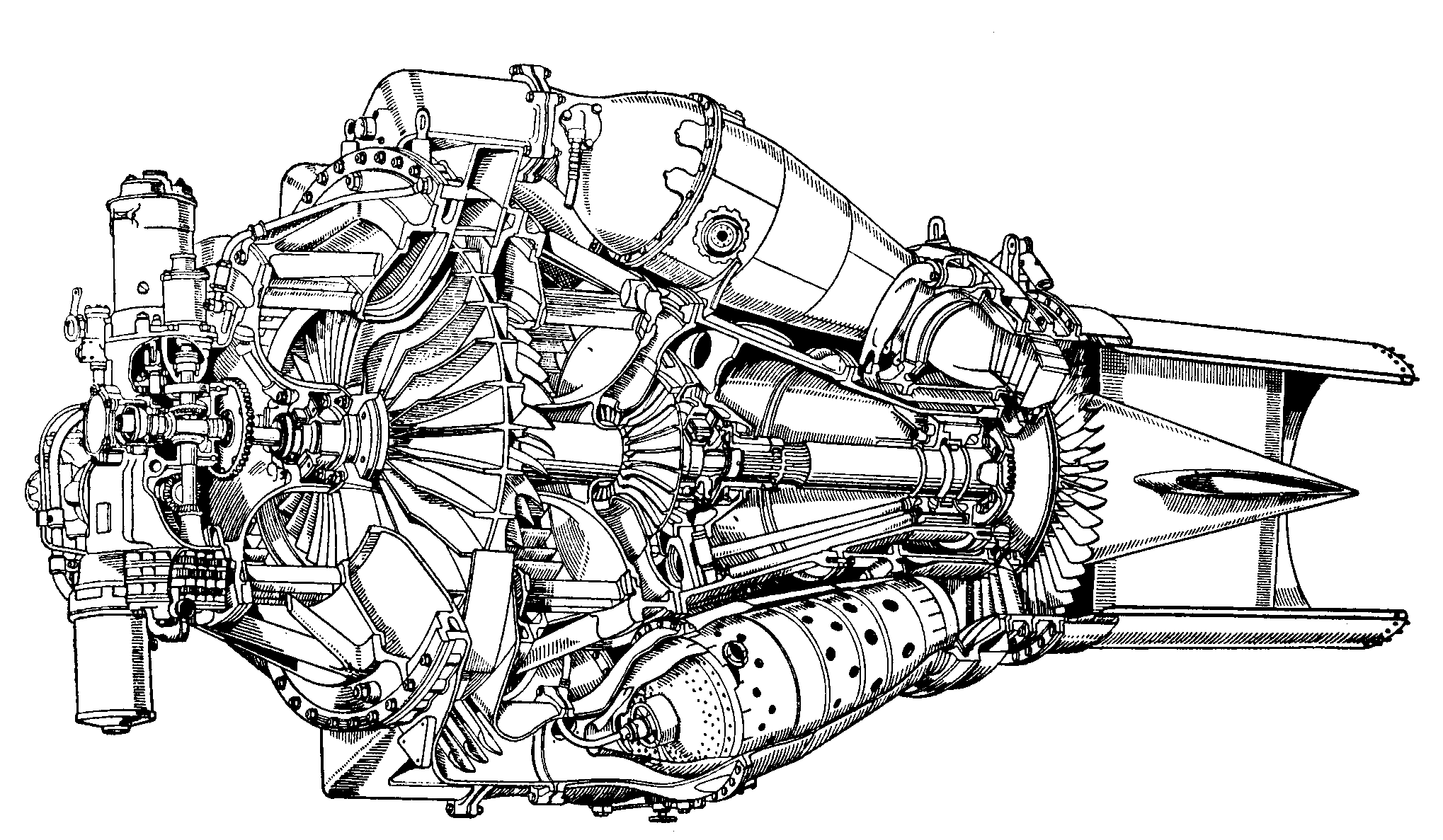 Il motore era dotato di un compressore centrifugo, che richiedeva una fusoliera di diametro maggiore rispetto agli aerei con compressori assiali già apparsi durante la seconda guerra mondiale in Germania e Gran Bretagna.