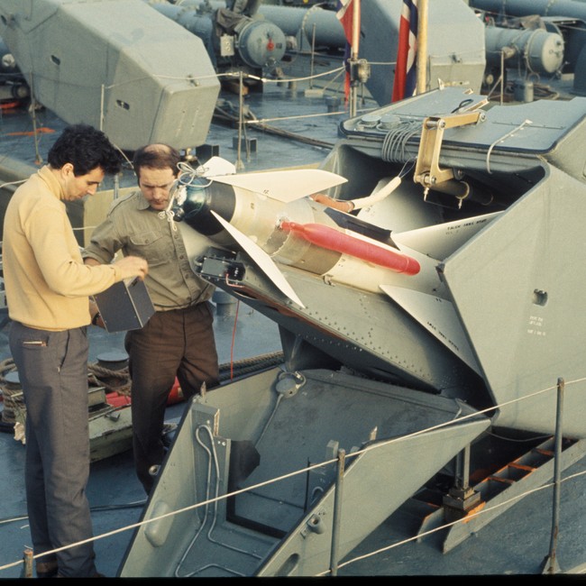 Penguin was originally developed in a collaboration between the Norwegian Defence Research Establishment (NDRE; Norw. FFI) and Kongsberg Våpenfabrikk starting in the early 1960s, with financial support from the U.S. and West Germany. US Navy test facilities and technical assistance were made available to facilitate development. It was the first NATO anti-shipping missile with an IR seeker instead of the commonly used active radar seeker. Both hardware and software has been updated since entering series production in 1972.