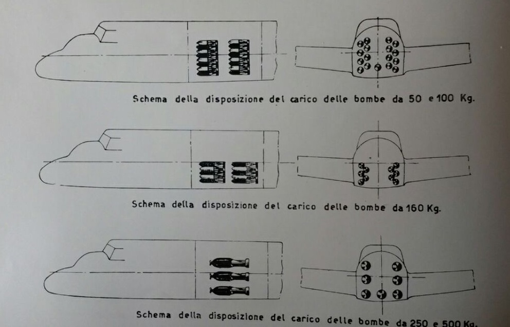 - Carico di bombe: 4.800 kg; 10 bombe convenzionali italiane da 500 Kg.