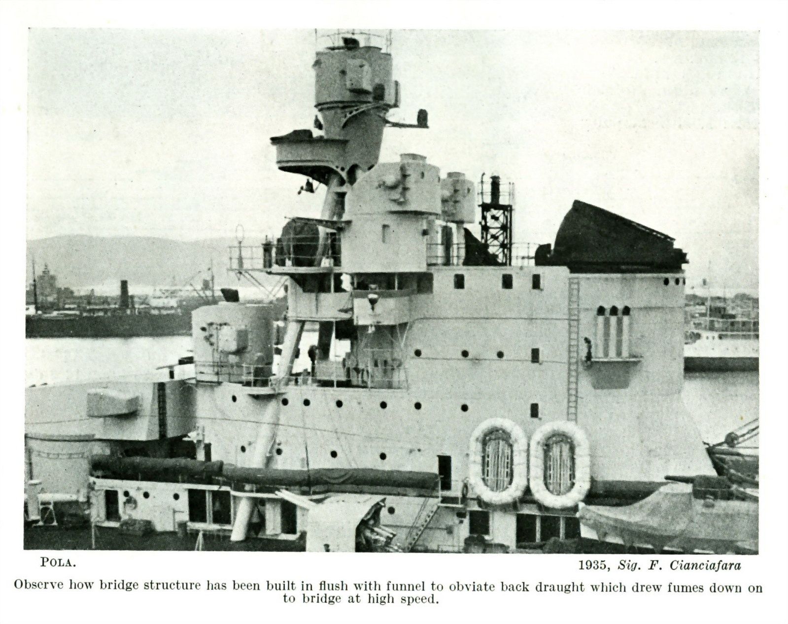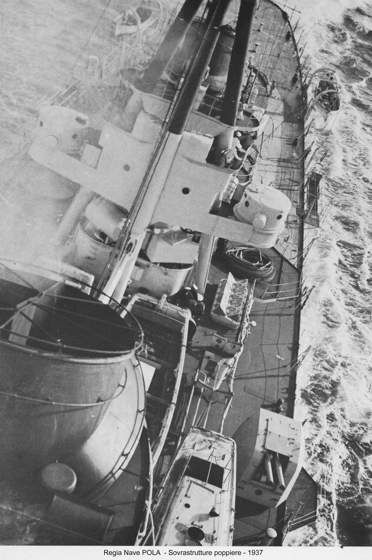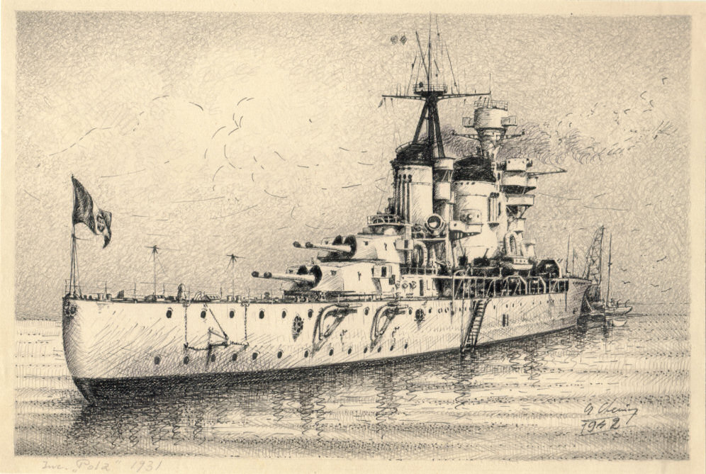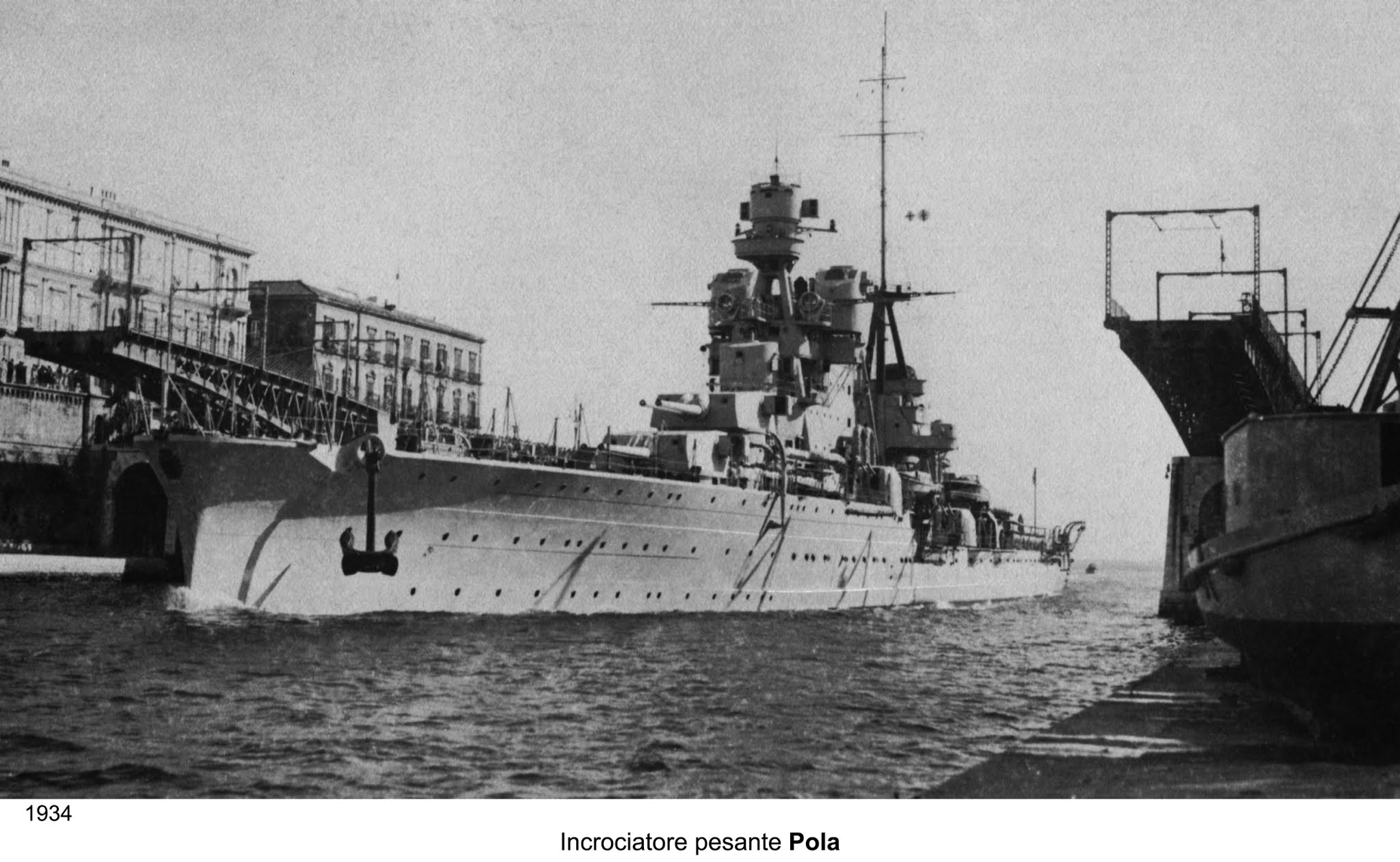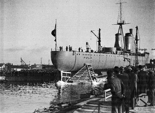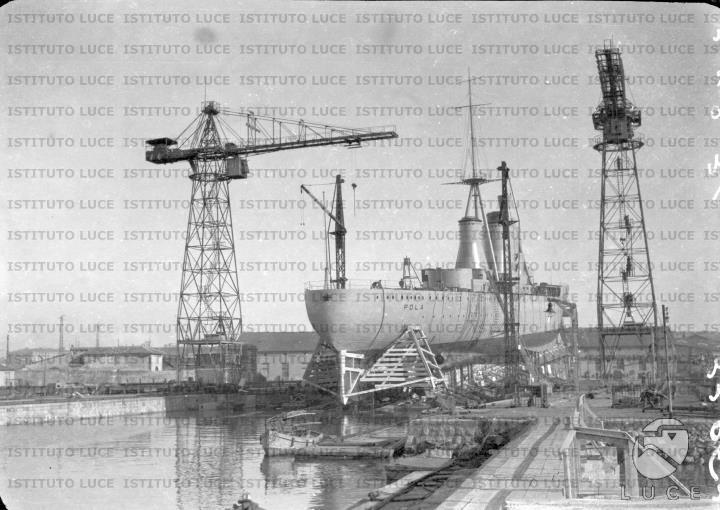 Impostata nei cantieri OTO di Livorno il 17 marzo 1930, la nave venne varata il 5 febbraio 1931 con il nome di Pola in onore dell’omonima città italiana, per poi entrare in servizio il 21 dicembre 1932. Nel corso del periodo interbellico l’incrociatore svolse un’intesa attività di addestramento nelle acque del mar Mediterraneo, oltre a riviste navali nelle acque italiane e visite nei porti nazionali; tra il 1936 e il 1937 il Pola fu impegnato operativamente nelle acque della Spagna durante il periodo della guerra civile spagnola, come parte della missione internazionale volta a contrastare il contrabbando di armi nella regione. Il 23 novembre 1938, nel corso di un’esercitazione nelle acque di casa, il Pola investì per errore il cacciatorpediniere Lampo provocandogli gravissimi danni tra cui il distacco della sezione di prua.
