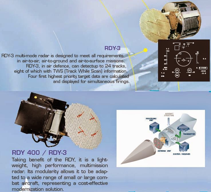 Il radar RDY-3 è disponibile con antenne di diverse dimensioni per la modernizzazione di caccia multiruolo leggeri e medi come Mirage V, Mirage F1, Mirage 2000, Mig-29 e LCA/Tejas. RC400 è una variante a potenza inferiore dell’RDY -2. Utilizza un’antenna più piccola ed ha prestazioni molto inferiori.