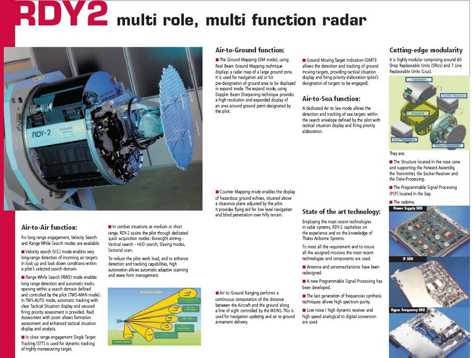 La versione modernizzata, RDY-2 ha una portata aria-aria maggiore del 15%, una modalità SAR ( Radar ad apertura sintetica ) che consente la mappatura del terreno con una risoluzione inferiore a un metro e un raffinato tracciamento del bersaglio in movimento.