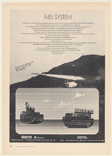Nel 1974 la Sistel stava continuando una graduale evoluzione del suo missile terra-aria a breve raggio denominato “Indigo”, ma non aveva ottenuto ancora alcun contratto per la produzione di serie. Le prove di qualificazione dell’Esercito Italiano nella versione trinata terrestre – per la difesa di punto – terminarono alla fine del 1973, e le prove della variante semovente per la protezione delle truppe continuarono per tutto il 1974, con l’ultima serie di lanci in Sardegna. In tutto vennero effettuati circa 100 lanci di qualificazione.