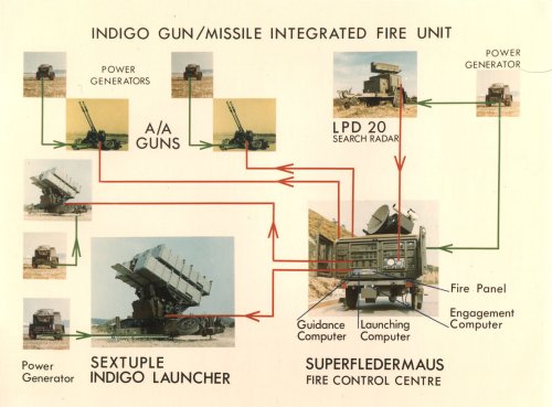 Sulla base dell’esperienza nella guerra di ottobre 1973 in Medio Oriente, la Sistel era fiduciosa che ci fosse un mercato per il lanciatore mobile Indigo accoppiato con i cannoni Oerlikon da 35mm o Bofors da 40mm per la difesa di punto a corto raggio. Sia i missili che i cannoni potevano essere diretti dal sistema di controllo del tiro “Superfledermaus” della Contraves.