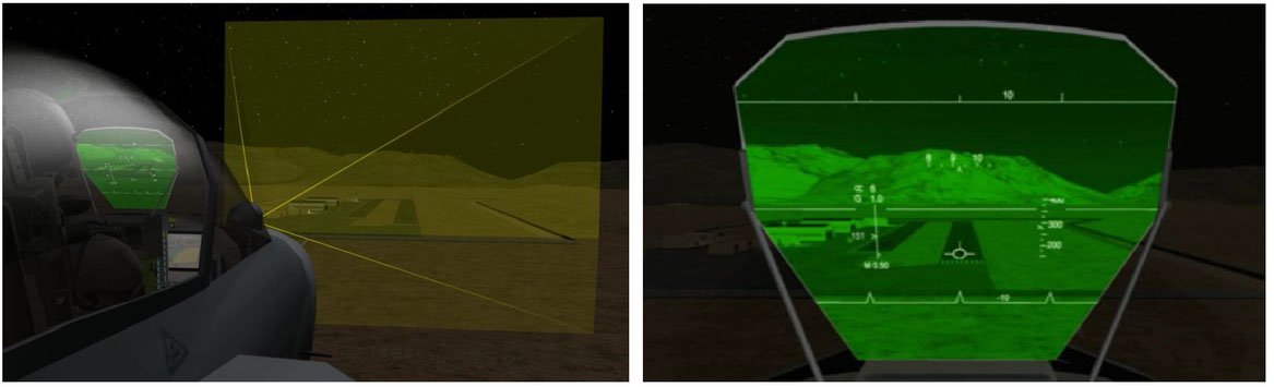 - Immagine IR orientabile sul casco (SIRPH): il sensore IRST è accoppiato al movimento della testa del pilota. Il sensore quindi guarda dove sta guardando il pilota, l’immagine FLIR viene proiettata sul display head-up.