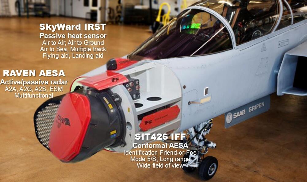 Il sistema equipaggia il nuovo Gripen E dell’Aeronautica Militare svedese con 60 Skyward G-IRST (ricerca e traccia a infrarossi), sistemi di ricerca e binario a infrarossi realizzati nello stabilimento Leonardo di Nerviano (Milano). Lo Skyward-G IRST è un sensore elettro-ottico a lungo raggio. È un sistema passivo che non emette segnali propri quando è in uso. Rileva le tracce di calore di altri sistemi aerotrasportati ma non può essere rilevato dal nemico. Ciò fornisce un grande vantaggio tattico. Con l’IRST i caccia Eurofighter o Gripen possono rilevare e tracciare obiettivi ostili, inclusi aerei, navi militari e veicoli terrestri. Il sistema offre anche una significativa capacità di “contro-furtività” e, se usato da solo o in combinazione con gli altri sensori, può produrre informazioni di tracciamento ad alta fedeltà contro bersagli complessi su lunghe distanze, ben oltre il raggio visivo.