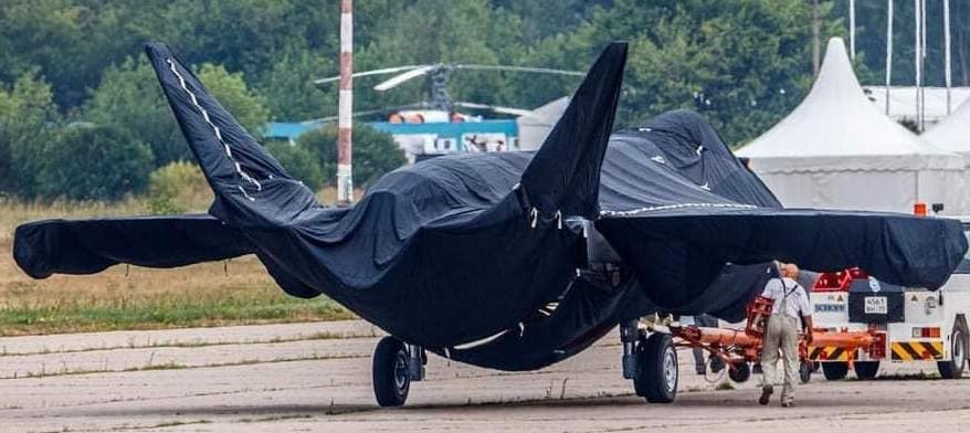 La UAC ha anche condiviso sui social media alcune fotografie a lungo raggio del modello trainato sotto teloni neri in una sala espositiva chiusa dedicata. È stato tenuto nascosto in attesa di una presentazione al presidente russo Vladimir Putin da parte di Yuri Slyusar, presidente dell’UAC, nel giorno di apertura dello spettacolo del 20 luglio.
