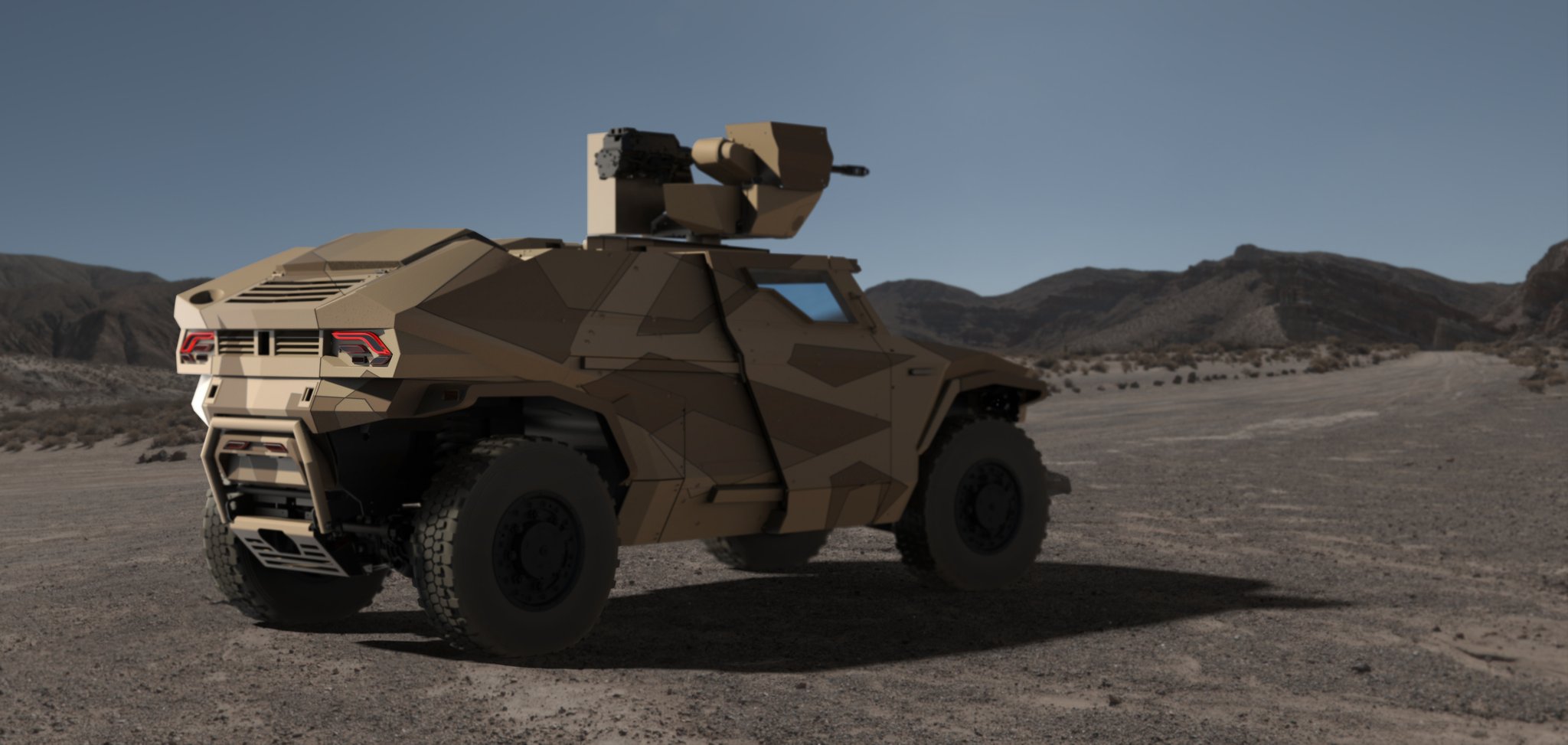La forma tozza limitata a 1,90 m di altezza, con il conducente nel sedile anteriore centrale, i tre sedili dei soldati nella posizione centrale posteriore, davanti al vano motore, le porte scorrevoli sostituibili da porte convenzionali su richiesta, azionate elettricamente o manualmente e aprendo parzialmente il tetto per facilitare l’accesso e l’uscita veloci degli occupanti caricati; la formidabile trasmissione 4x4x4 che permette al veicolo di muoversi convenzionalmente o lateralmente (a “granchio”) e svoltare entro un raggio di 5 metri. Le ruote anteriori sono comandate da un volante convenzionale, mentre le ruote posteriori sono, per il momento, comandate da un joystick ma il tutto verrà poi raccolto nel volante.