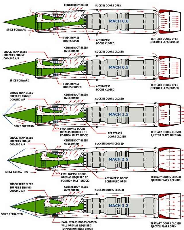 L’aspetto ingegneristicamente più caratteristico di questo aereo sono sicuramente i suoi motori. Si tratta infatti di turboreattori convertibili durante la crociera a velocità supersonica a statoreattori tramite un particolare complesso di valvole e tubi che bypassano i compressori e le turbine. In questa modalità la struttura a cono, posta davanti all’imbocco delle due turbine, genera un complesso sistema di onde d’urto che rallentano successivamente l’aria aumentandone la pressione, portandola a 400 volte quella atmosferica e permettendo il funzionamento del reattore senza il compressore a turbina. Durante la sperimentazione del Blackbird, costituita da graduali prove di velocità, ci fu un problema a Mach 2,5-2,6: a questa velocità si verificò una perdita di potenza di un reattore; il problema era che, raggiunta questa velocità, la turbina non era più in grado di convogliare l’onda d’urto, e la respingeva scaricandola dall’imbocco. A questo difetto si è posto rimedio creando degli sfoghi che tengono la pressione costante.