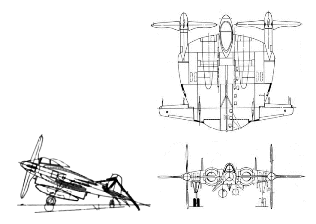 Il suo design non ortodosso consisteva in un corpo piatto, un po’ a forma di disco (da cui il nome) che fungeva da superficie portante. Due motori a pistoni nascosti nella carlinga azionavano eliche poste sul bordo d’attacco alle estremità delle ali.
