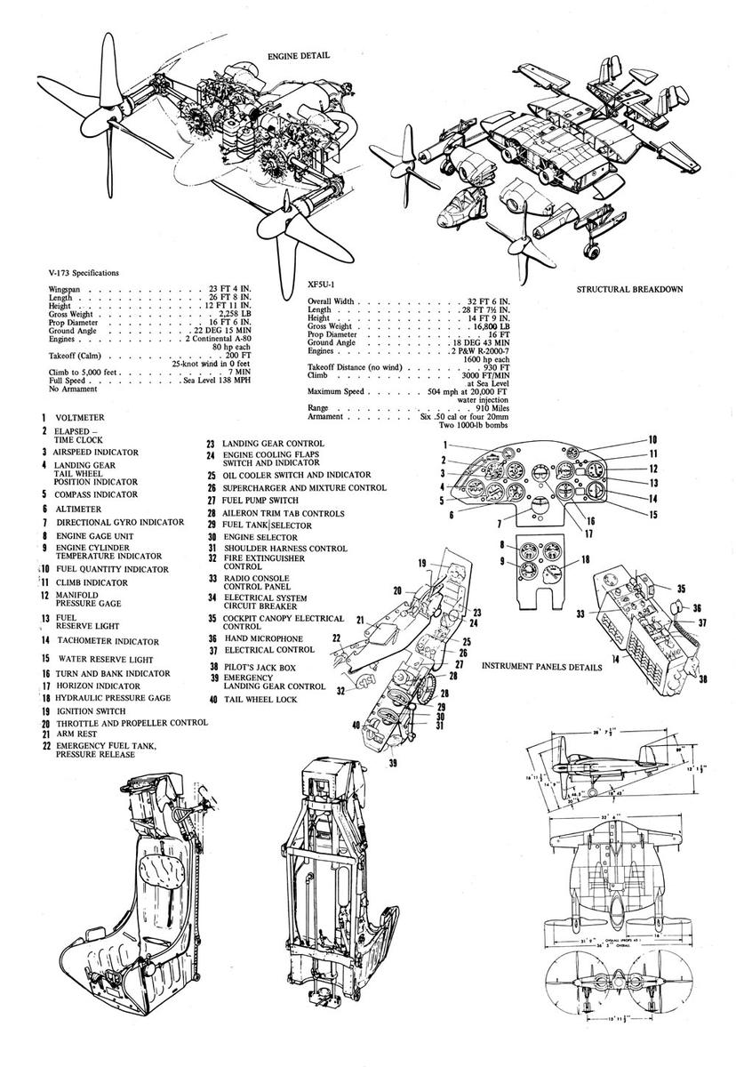 Una versione sviluppata del prototipo originale V-173, l’XF5U-1 era un aereo più grande. Di costruzione interamente metallica, era quasi cinque volte più pesante, con due motori radiali Pratt & Whitney R-2000 da 1.400 CV (1.193 kW). La configurazione venne progettata per creare un velivolo a basso allungamento con basse velocità di decollo e atterraggio ma alta velocità massima. L’aereo fu progettato per mantenere una bassa velocità di stallo e un’alto angolo di attacco dal prototipo V-173 fornendo al contempo una migliore visibilità per il pilota, maggior comfort nella cabina di pilotaggio, meno vibrazioni e disposizioni per installare l’armamento. Ciò prevedeva una riprogettazione della cabina di pilotaggio spostandola dal bordo d’attacco alare a una gondola anteriore che si estendeva ulteriormente davanti al bordo d’attacco. Il gancio di arresto fu cambiato in un gancio dorsale che avrebbe diminuito la resistenza dell’apparato.