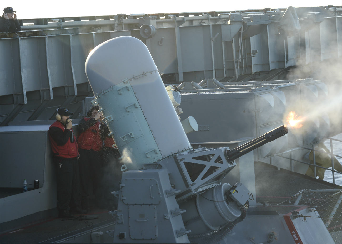 Il 10 febbraio 1983, la USS Antrim stava conducendo un’esercitazione a fuoco al largo della costa orientale degli Stati Uniti usandoli CIWS contro un drone bersaglio. Sebbene il drone sia stato impegnato con successo a distanza ravvicinata, i detriti del bersaglio rimbalzarono sulla superficie del mare e colpirono la nave. Ciò causò danni significativi e incendi dal carburante residuo del drone, che uccise un istruttore civile a bordo della nave.