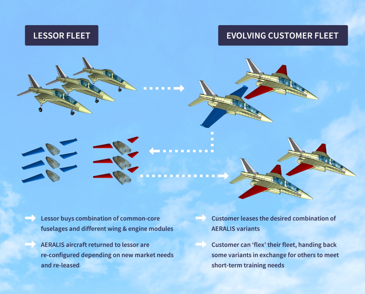 Le società di leasing potranno acquisire AERALIS, noleggiare l’aereo in modo flessibile alle forze aeree, quindi riprenderlo per essere riconfigurato e riproposto in altri mercati, ottenendo dall’asset molto più vita generatrice di entrate di quanto sia possibile con i tradizionali progetti “fissi”.