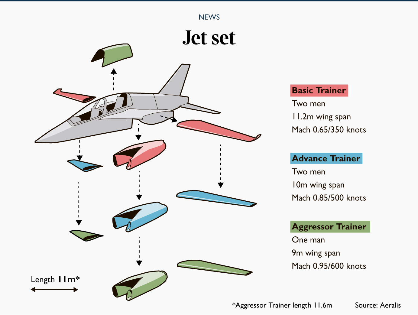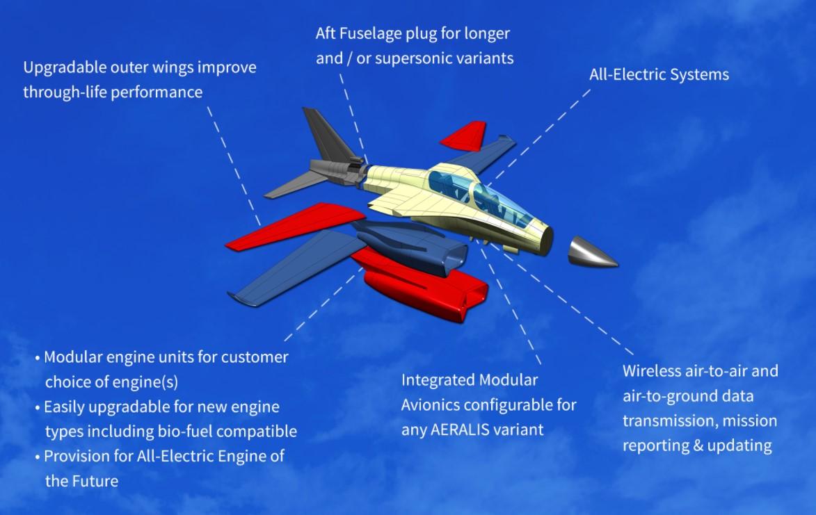 Il nuovo trainer avrà un design completamente modulare, una fusoliera centrale comune con una spina dorsale software ad architettura aperta costituisce la base. Attorno a questo hub centrale sarà possibile ordinare e utilizzare diversi sottosistemi a seconda delle esigenze del cliente. Ali e coda, motori e prese possono essere mescolati con avionica su misura per qualsiasi caso d’uso (addestratore di base, addestratore avanzato, attacco leggero, rifornimento aereo) un’aeronautica militare desidera.