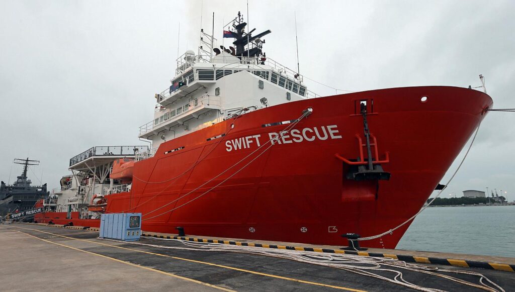 La nave salvataggio Swift Rescue (SSRV) della Marina Militare della Repubblica di Singapore è stata già posizionata nel Mare di Bali per le esigenze operative del caso.