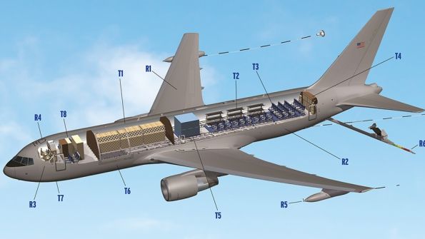 - Equipaggio: 3 (2 piloti, 1 boom operator) equipaggio base; 15 posti permanenti per membri dell’equipaggio di volo aggiuntivi / opzionali, compresi i membri dell’equipaggio di evacuazione aeromedica