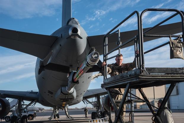 Il 10 gennaio 2019, l’USAF ha preso in consegna il primo KC-46, ben oltre la data di consegna del 2016 originariamente annunciata, anche se con due emissioni in sospeso e trattenuta di denaro. I due problemi in sospeso erano la pressione del braccio inadeguata durante il rifornimento di carburante dell’A-10 Warthog e la distorsione indotta dall’abbagliamento in determinate condizioni nel sistema di visione a distanza (RVS). L’USAF ha riconosciuto di non aver fornito a Boeing specifiche adeguate per l’A-10. Al traguardo C, Boeing ha fornito all’USAF un progetto del braccio che utilizzava lo standard internazionale di 1400 libbre di resistenza alla spinta, che hanno accettato, ma A-10 è in grado di generare solo 650 libbre.