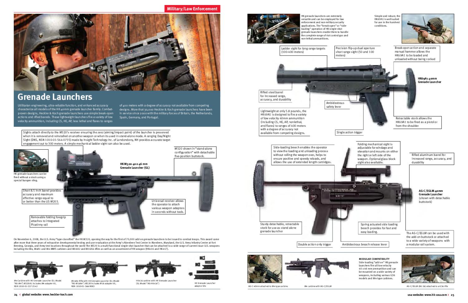 Come in molti sistemi d’arma, quali il G36, l’uso di polimeri e alluminio ad alta resistenza garantisce un’elevata durabilità e un peso molto contenuto. L’arma può sparare qualunque tipo di granata da 40 mm, comprese le granate in plastica da addestramento.