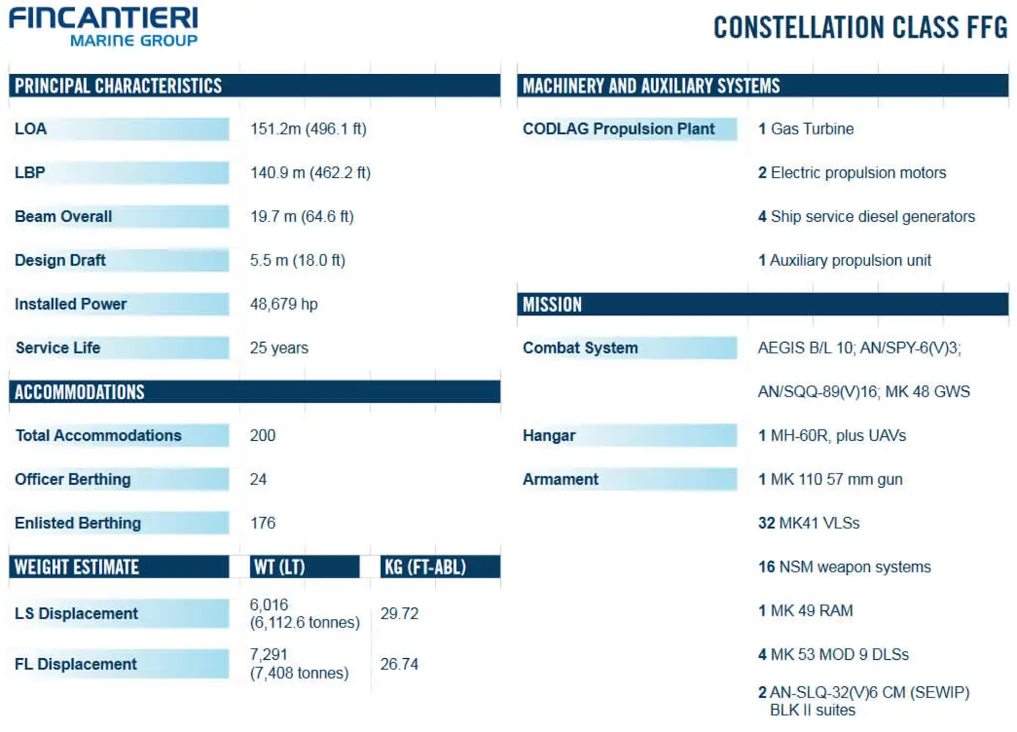Fincantieri e la Us Navy stanno lavorando, su mandato del Congresso, per garantire che i componenti della classe Constellation siano basati su un design italiano ma con componentistica statunitense al 96%.