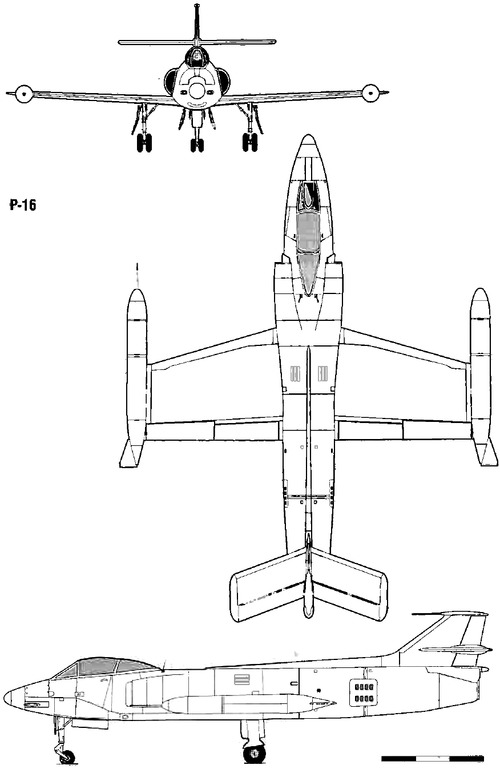 In tutti gli esemplari del P-16 il motore installato fu un turbogetto britannico Armstrong Siddeley Sapphire: i primi due esemplari montavano la versione ASSa.6, in grado di sviluppare una spinta pari a 36,92 kN, mentre a partire dal terzo velivolo il propulsore era nella versione ASSa.7 (dotata di postbruciatore) capace di 48,93 kN di spinta.