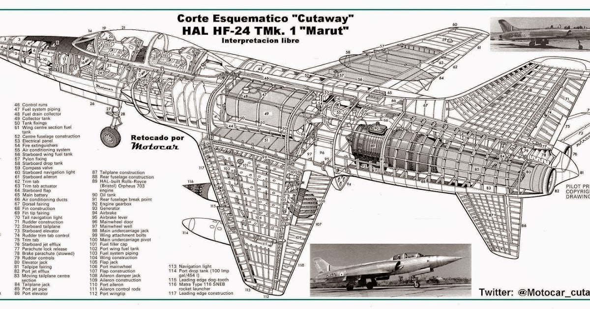 Marut Mk.1R – Due HF-24 dotati di due Bristol Siddeley Orpheus 703 postcombustione con una spinta del 18% a una spinta di 5,720 lbf (25,44 kN).