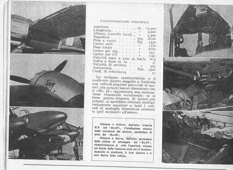 A conti fatti, l’aereo, ribattezzato IMAM Ro.57bis, con le nuove installazioni, pesava 3 490 kg a secco e 4 990 kg al decollo. L’aumento di peso portò il tempo di salita a 6000 metri a 9 minuti e 30 secondi (assolutamente eccessivo nel 1943), mentre l’impedimento aerodinamico di travetti, finestratura ventrale, freni aerodinamici e ruotino di coda, fecero scendere la velocità massima a 480 km/h. Peggio ancora, per una strana interferenza aerodinamica, il radiatore dell’olio del motore destrorso garantiva un raffreddamento insufficiente, provocando una tendenza di questo al surriscaldamento al massimo dei giri, mentre in affondata l’aereo risultava scarsamente stabile, pregiudicando la precisione del bombardamento in picchiata.