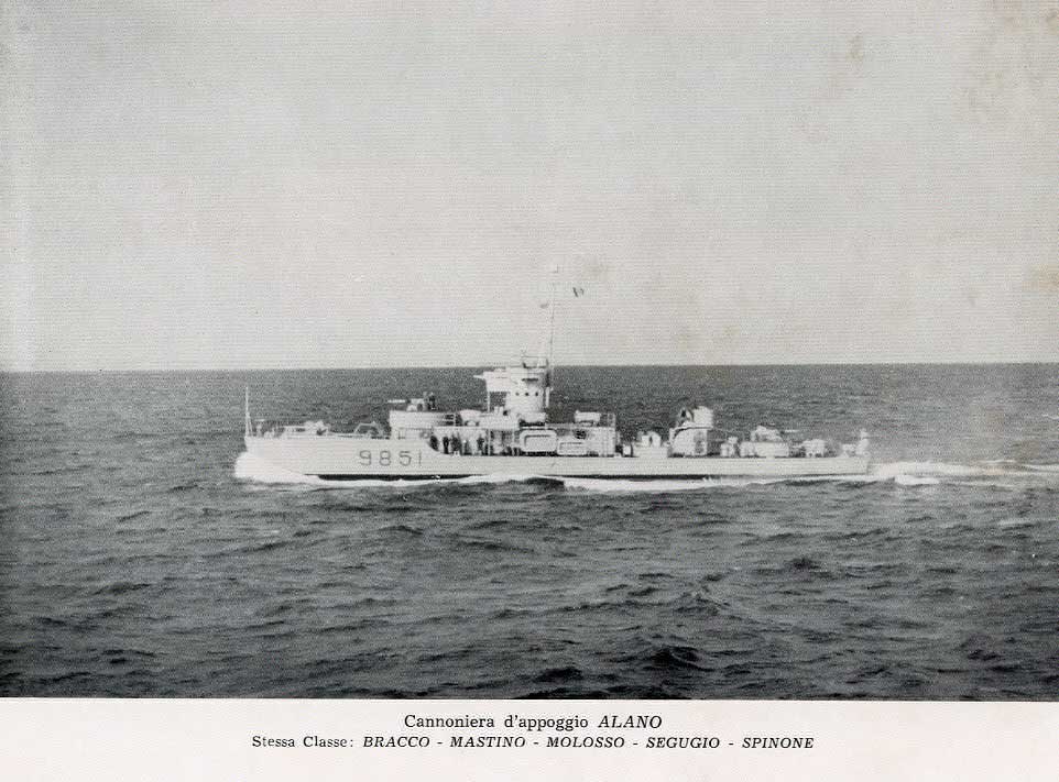 L’Alano lasciò il servizio nel 1971, le altre cinque cannoniere vennero radiate nel 1974, a trent’anni dal varo e dopo più di un ventennio trascorso con le insegne italiane.