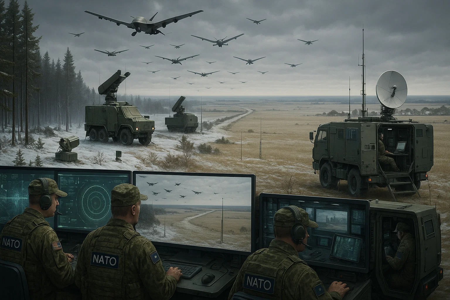Led by Germany and supported by six NATO member states—Estonia, Latvia, Lithuania, Finland, Poland, and Norway—the Drone Wall goes beyond a symbolic gesture. It is designed as a fully operational system, structured in layers that include AI-powered reconnaissance drones, ground-based sensors, mobile counter-drone platforms, and satellite surveillance. Its objective is to detect and neutralize threats in real time, whether drone incursions, GPS jamming, or clandestine cross-border activities, while providing NATO forces with timely and accurate intelligence across its most vulnerable areas.